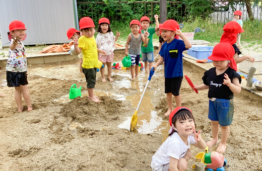 お散歩や水遊び、粘土や絵の具など様々な遊びをします。
